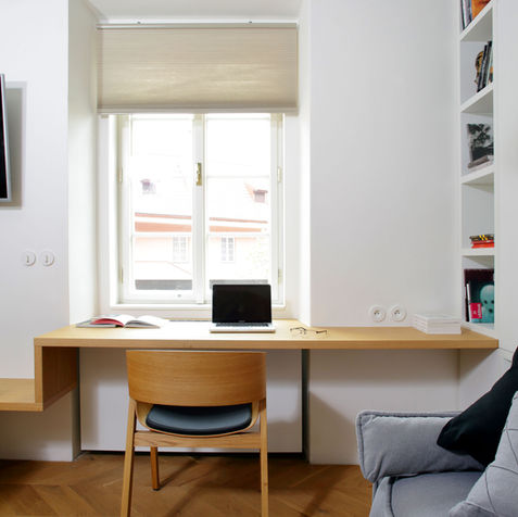 Malý byt o rozloze 35 m² v historickém domě na pražské Kampě prošel citlivou rekonstrukcí. Původně fragmentovaný prostor byl proměněn ve vzdušný a funkčně propojený celek, který využívá každý centimetr plochy.