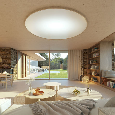 Uvnitř domu jsme chtěli navázat na charakter zahrady, abychom kromě možnosti do ní skutečně vstoupit vstupovali i pocitově. Zvolili jsme posuvné prosklené fasády, smazávající rozdíl mezi exteriérem a interiérem. Opírali jsme se současně o zadání na útulný, hřejivý interiér v přírodních, světlých tónech. Vybavení a povrchy interiéru převažují ve dřevě, kameni, béžové barvě.